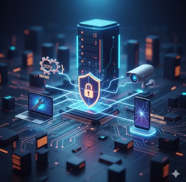 Diseño e implementación profesional de sistemas de videovigilancia (CCTV) para la seguridad de su hogar o empresa. Instalamos cámaras de alta definición, configuramos la grabación continua o por detección de movimiento, y establecemos el acceso remoto para monitoreo desde cualquier lugar.